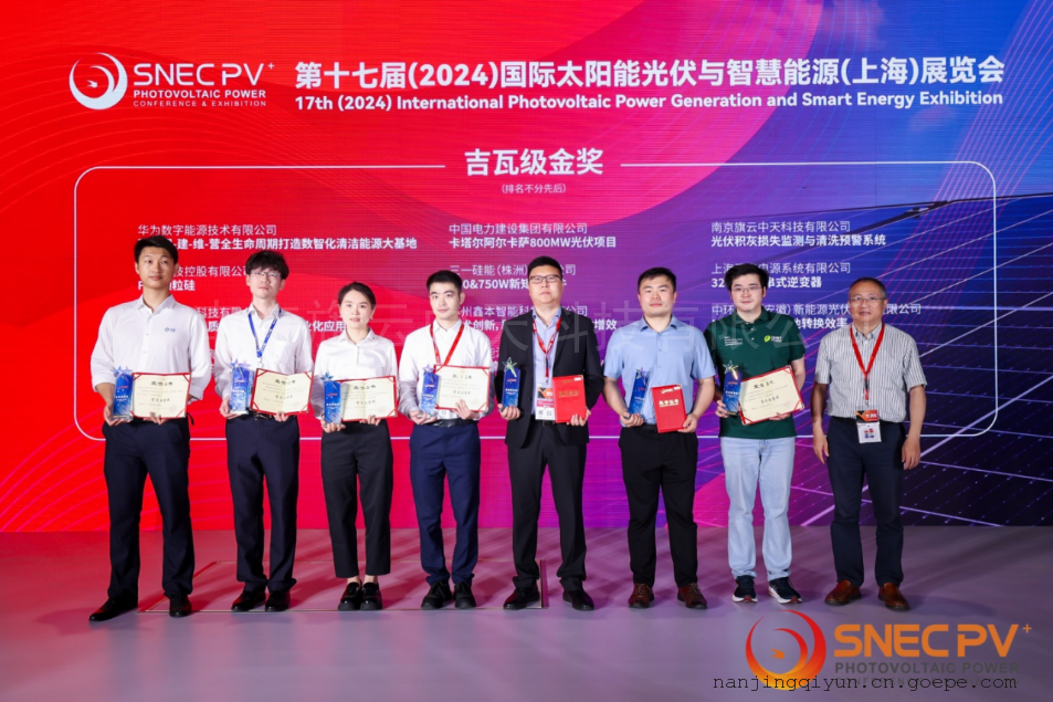 旗云中天“光伏积灰监测与清洗预警系统”荣获SNEC第十七(2024)国际太阳能光住在与智慧能源(上海)大会“亮点”吉瓦级金奖。
