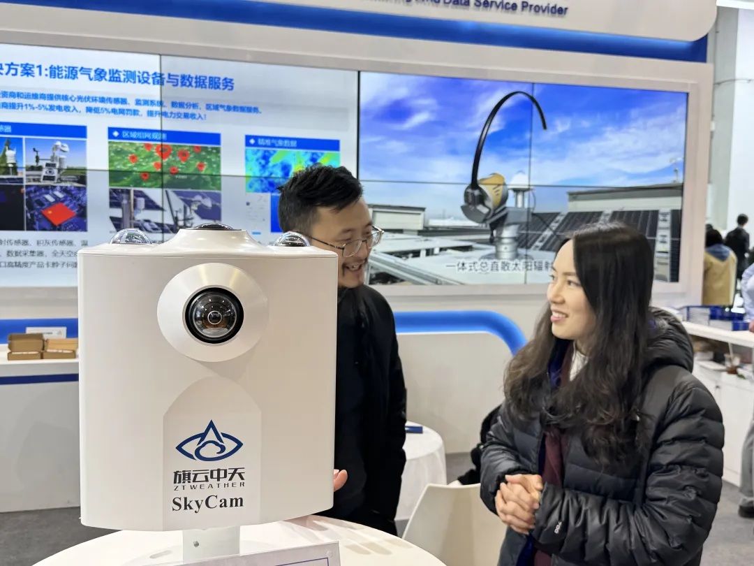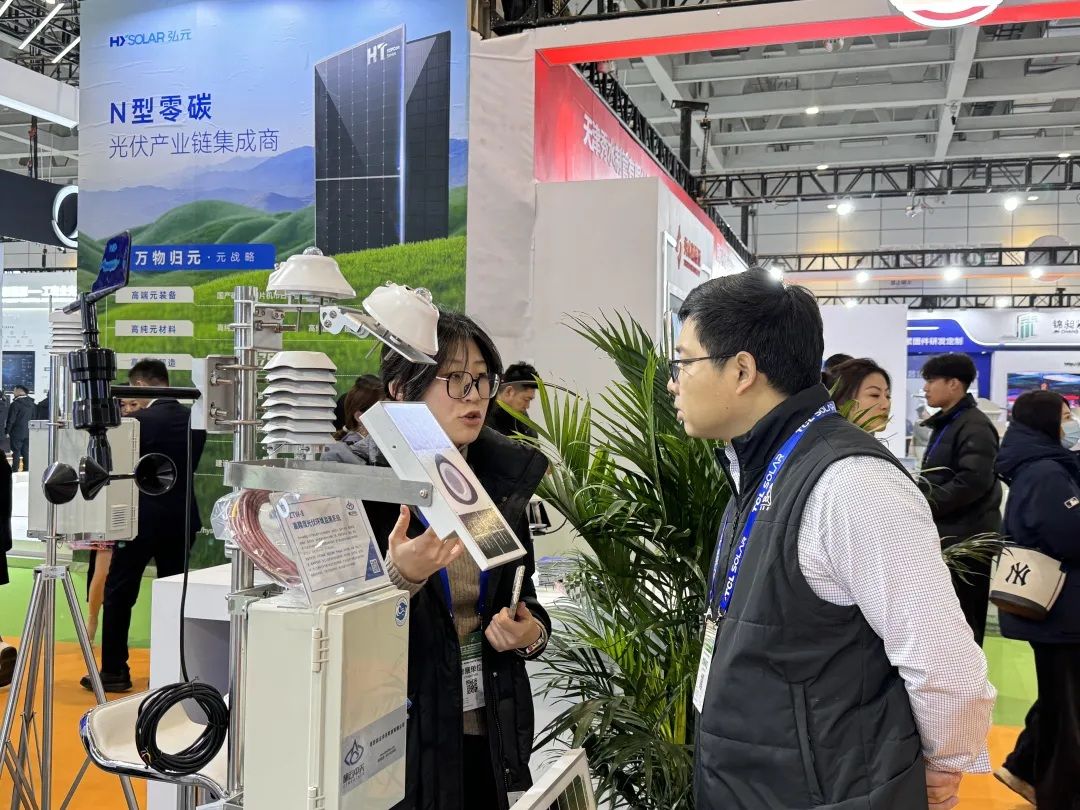 展会期间,旗云中天的展位前人潮攒动,拥有ClassA级辐射传感器的光伏环境监测系统吸引了阳光电源、港华能源、固德威等能源企业代表驻足交流,多家企业达成合作意向。
