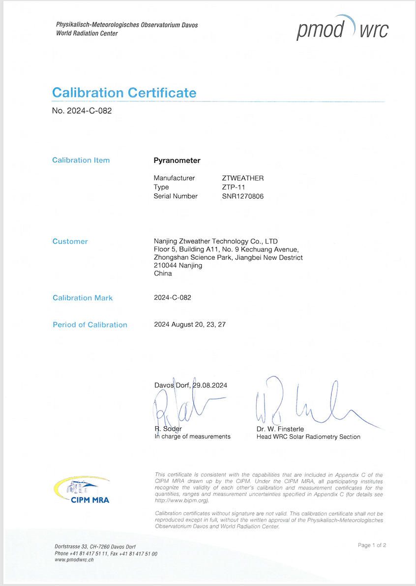 标准偏离情况 测量范围 0~4000 W/m² - - 等级/ISO 9060 Class A Class A 达到标准 响应时间